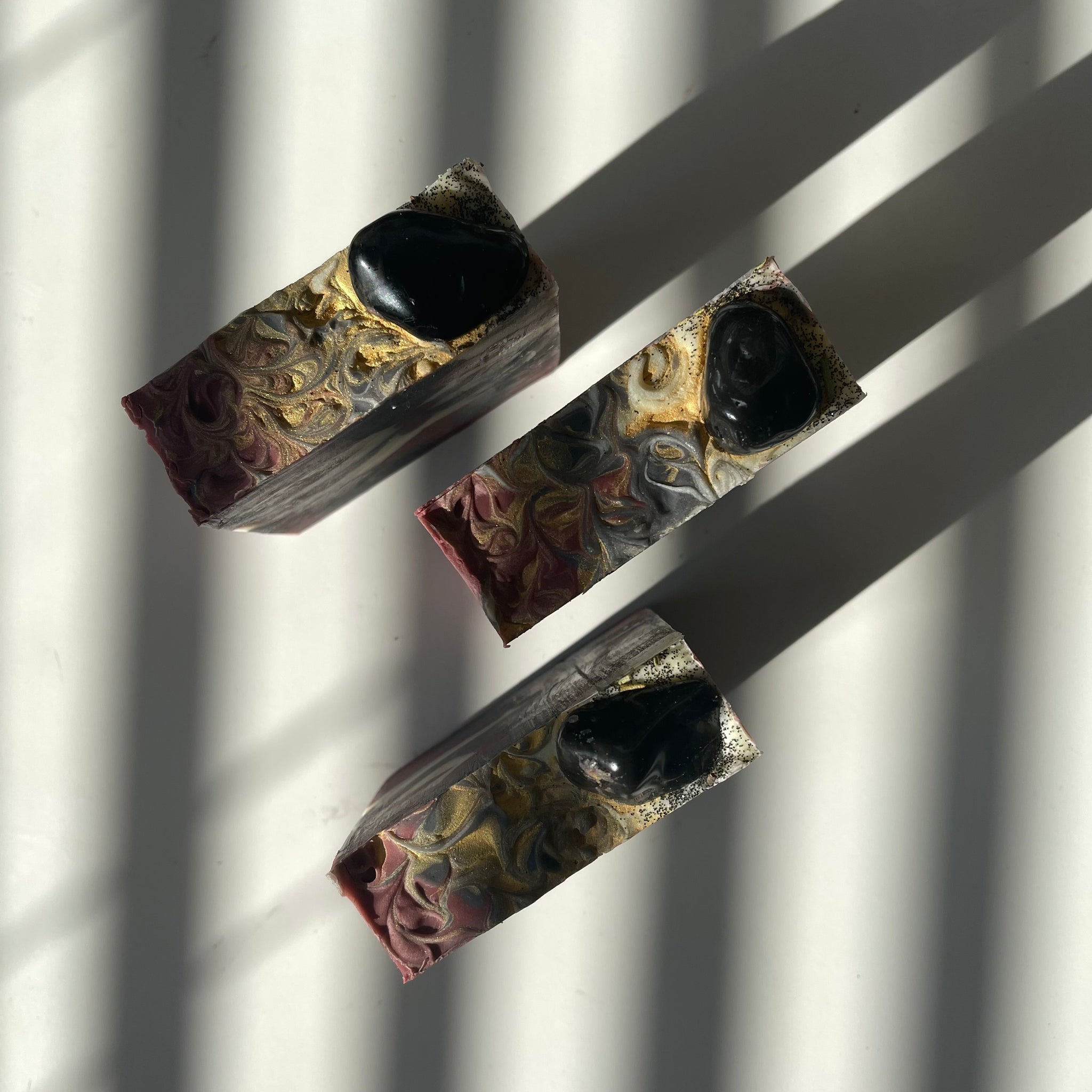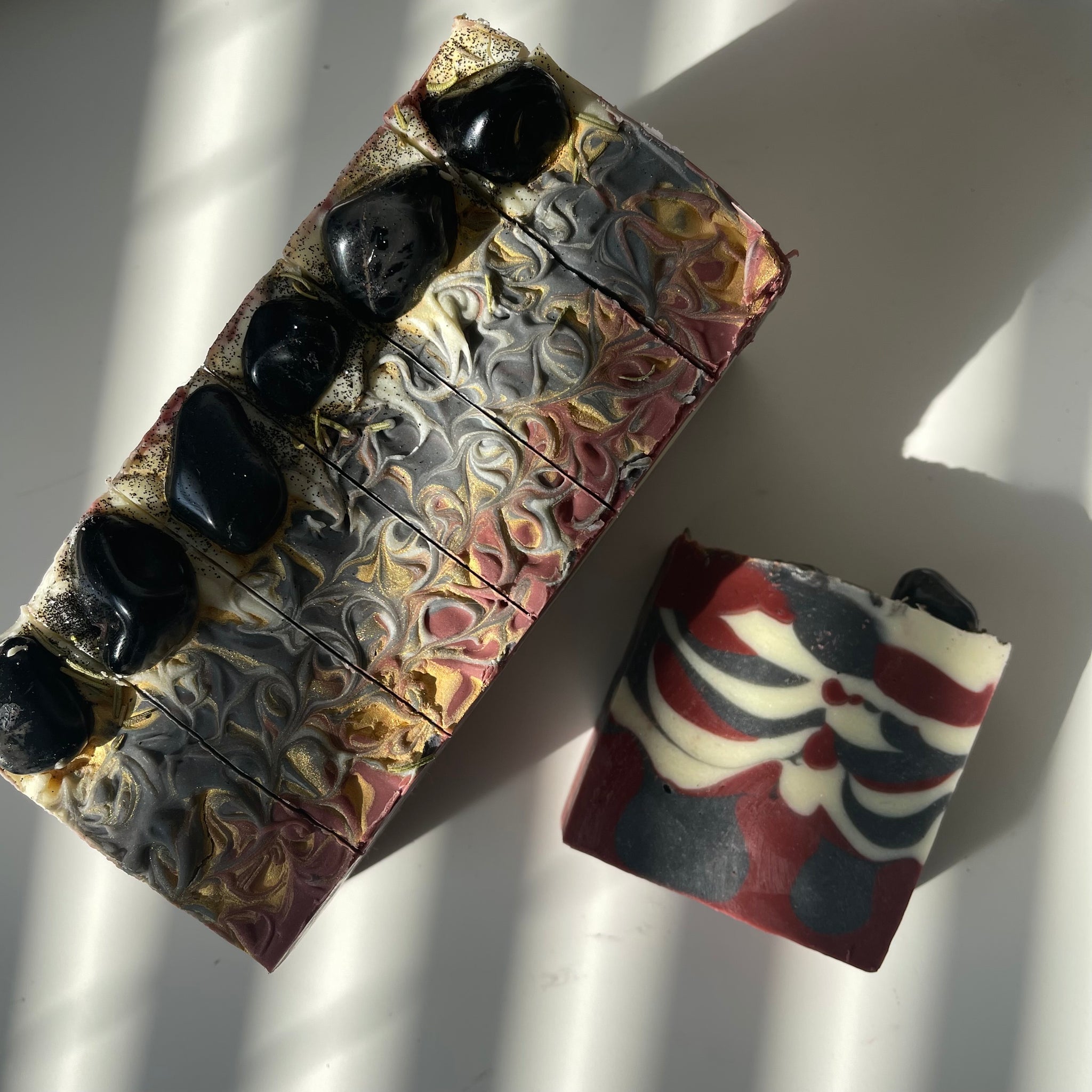 Black Onyx crystal infused protection soap intended to wash away negativity, lower vibrational energies & whatever you seek to release and let go of. As well as to protect you.